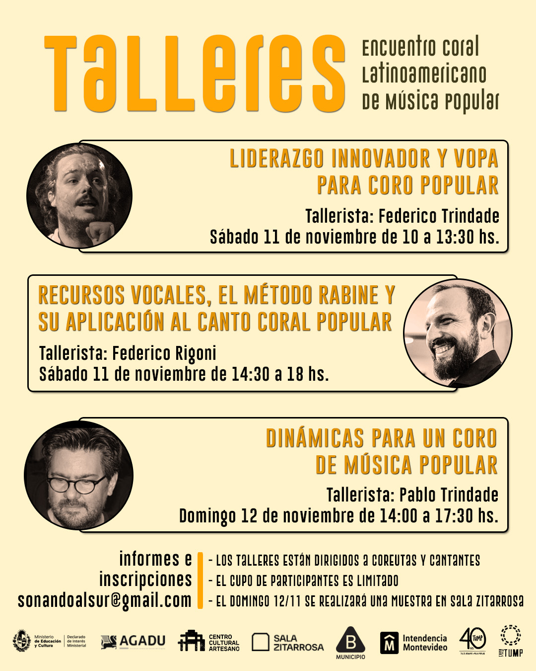 “Sonando al sur” es el encuentro coral organizado por el Coro del Taller Uruguayo de Música Popular, que se llevará a cabo del 9 al 12 de noviembre, en la ciudad de Montevideo.