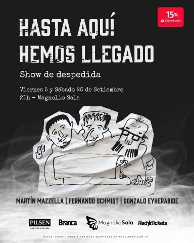 Tres guionistas con una larga trayectoria de dislates presentan un espectáculo donde el humor, la música y el dibujo no dicen presente, pero están. Un show de despedida de dudosa fiabilidad, tanto así que pasaron los de Conexión Ganadera y les pareció una estafa demasiado grande.