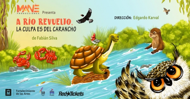 “A río revuelto, la culpa es del carancho" es una obra que se centra en las consecuencias que traen los residuos que desechan los humanos y que afectan la vida silvestre. A través de un relato lleno de aventuras y emociones, el viejo búho nos invita a conocer a diversos animales autóctonos y sus vivencias. La historia enfatiza la importancia del trabajo en equipo y la solidaridad.