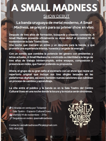 La banda de metal uruguaya, A Small Madness, presenta su show debut en la Sala Teatro del Centro Cultural Estación Goes