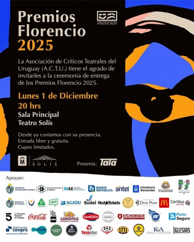 El lunes 1.º de diciembre a las 20 h en el Teatro Solís se realizará la entrega de los Premios Florencio 2025 en sus categorías para adultos, una de las instancias más relevantes del reconocimiento a la labor teatral en Uruguay. El Instituto Nacional de Artes Escénicas (INAE) hará entrega de dos reconocimientos especiales vinculados a sus líneas de acción institucional.