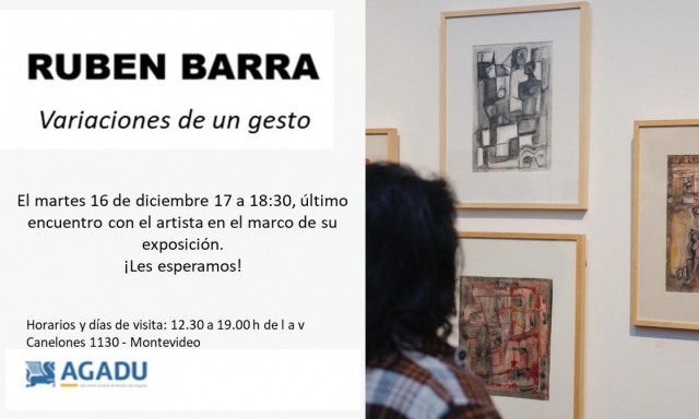 El martes 16 de diciembrede 17:00 a 18.30 h será el úlimo encuentro con el artista en el marco de su exposición en Sala de los Fundadores (AGADU).