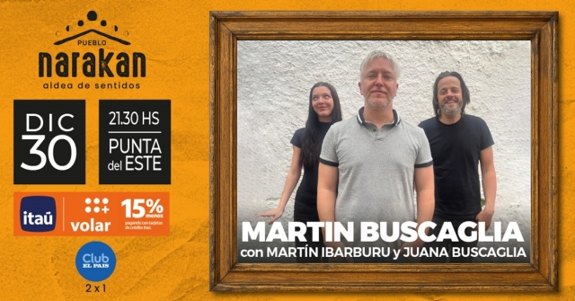 Martín Buscaglia junto a MArtín Ibarburo y Juana Buscaglia en vivo en Pueblo Narakan.