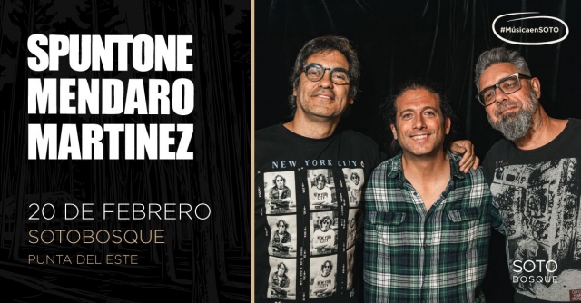 Alejandro Spuntone, Guzmán Mendaro y Mariano Martínez se presentan en vivo en Soto Bosque, Punta del Este, con un show único de rock.