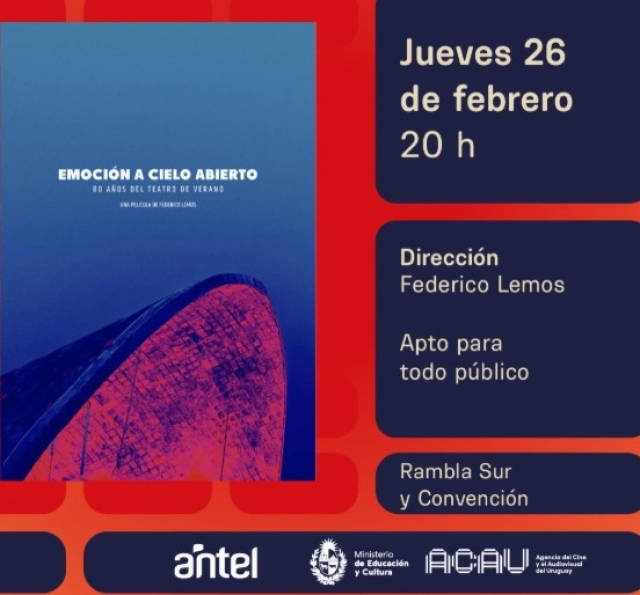 La Agencia del Cine y el Audiovisual del Uruguay (ACAU), junto al Ministerio de Educación y Cultura (MEC), la Intendencia de Montevideo (IM) a través de Montevideo Audiovisual y ANTEL invitan a una nueva función de cine uruguayo al aire libre en el recién estrenado Parque Mauá (Rambla Sur y Convención) en el marco de, las actividades que buscan acercar el cine nacional a nuevos públicos y a distintos espacios de la ciudad.
