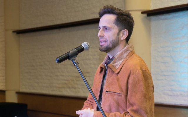Gustavo Badin, integrante del "Grupo Hojas" quien agradece el reconocimiento y comparte estar muy feliz de poder seguir trabajando de lo que ama y cita la frase de Nietzsche “La vida sin música sería un error".