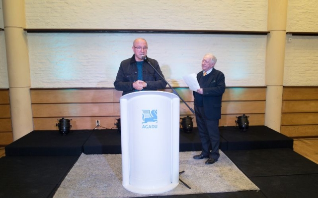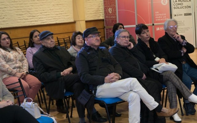 Julio Zabaleta toma la palabra para contar que salieron del departamento de Colonia en el año 67 y que le fue muy bien en la parte autoral y que ello se lo debe a Gustavo y el hermano. Agradece a AGADU por compartir y ser parte de la historia.
