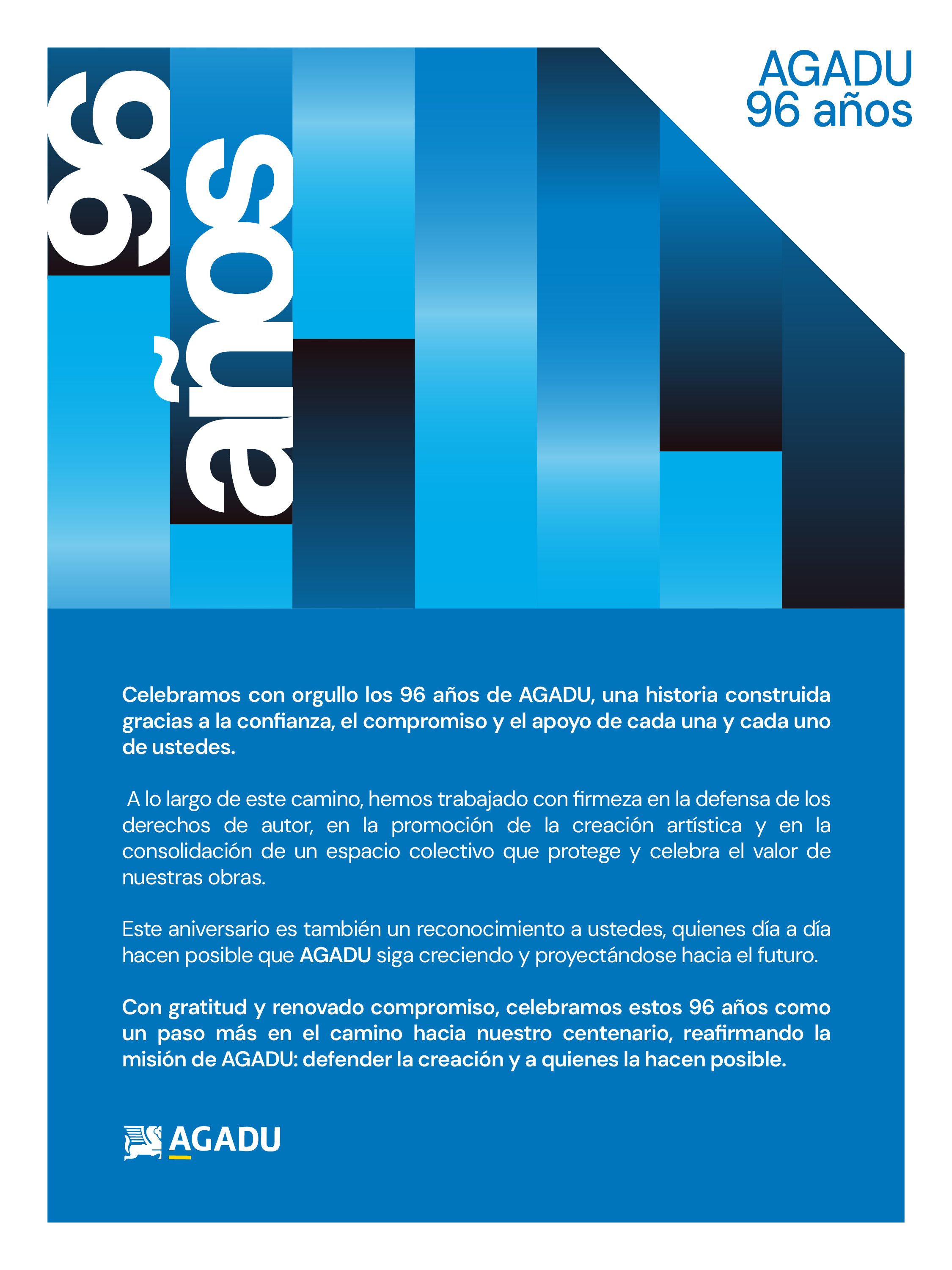 26 de Septiembre de 2025Celebramos con orgullo los 96 años de AGADU, una historia construida gracias a la confianza, el compromiso y el apoyo de cada una y cada uno de ustedes.