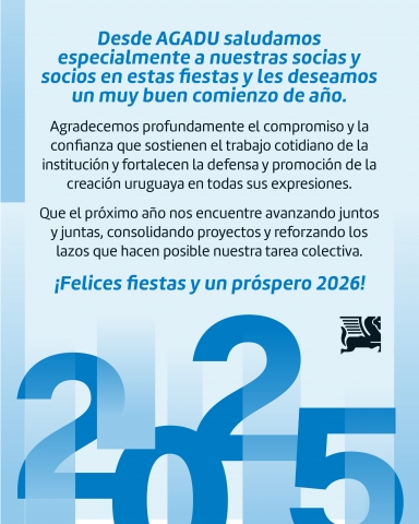Desde AGADU saludamos especialmente a nuestras socias y socios en estas fiestas y les deseamos un muy buen comienzo de año.