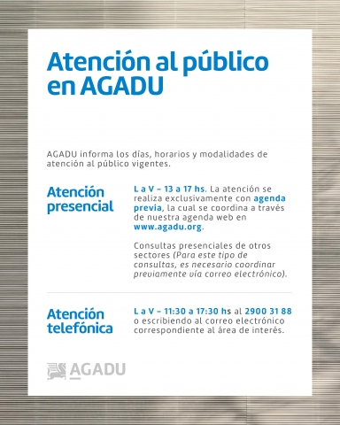 AGADU informa los días, horarios y modalidades de atención al público vigentes.